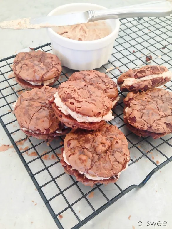 What's better than a brownie? ... a brownie in cookie form! These cookies are fudgy and chewy just like brownies and are even better when you sandwich orange spice buttercream between two of them.